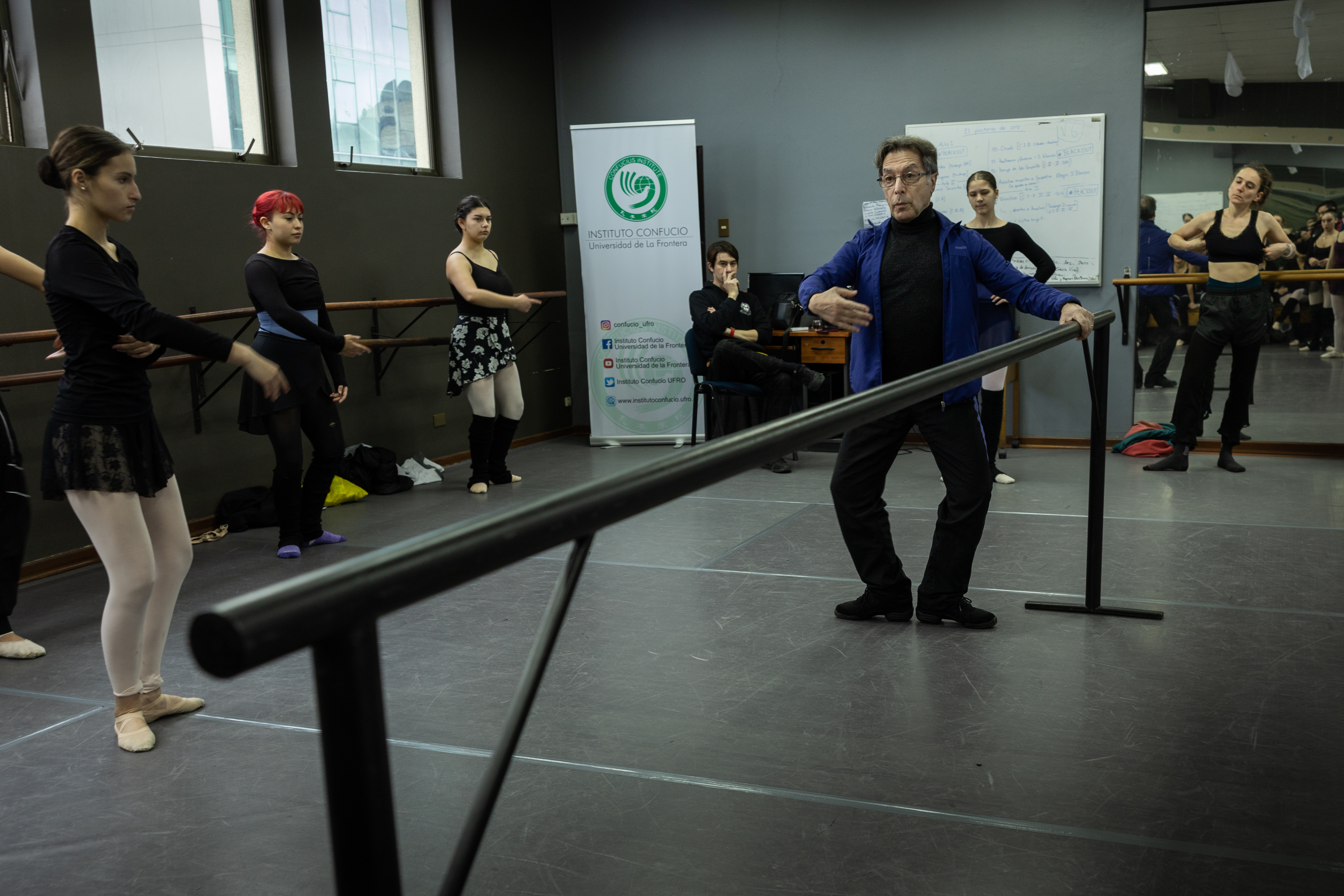 La iniciativa de venir a Temuco surge del maestro Rodrigo Cartes -docente de la Escuela Artística de Ballet UFRO- él hace un tiempo quería que yo viniera y ahora pudimos materializarlo, estoy muy contento de venir y estoy muy feliz de poder ofrecer mis conocimientos de forma muy modesta, y aportar algo tanto a los alumnos como a los profesores. Es muy importante que se descentralice la danza, aquí en Chile tenemos el Teatro Municipal de Santiago y es el espacio donde llegan los coreógrafos, los maestros, profesores y es lo que absorbe todo aquí a nivel de danza. Me refiero al estilo romántico, clásico y neoclásico y para mí es muy importante llevar lo que yo he aprendido a lo largo de mi carrera y a través de mi experiencia como maestro de baile y repositor de obra, llevarlo a todas partes, porque cuando estuvimos en la pandemia lo hice varias veces con diversas escuelas de forma online y fue muy interesante. Pude abordar temas muy cercanos a la danza, como puede ser la pintura, la escultura y todo lo que se vive en torno a una compañía de ballet.